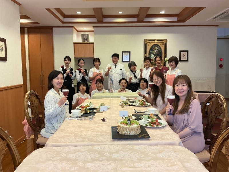 入院中の皆様と一緒に、お祝いプレートにお祝いオリジナルカクテル、大きなケーキをご用意しお祝い致しました。